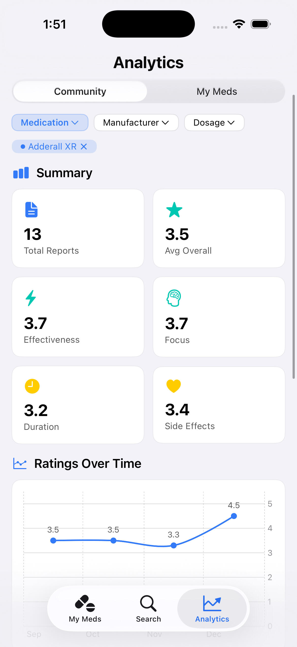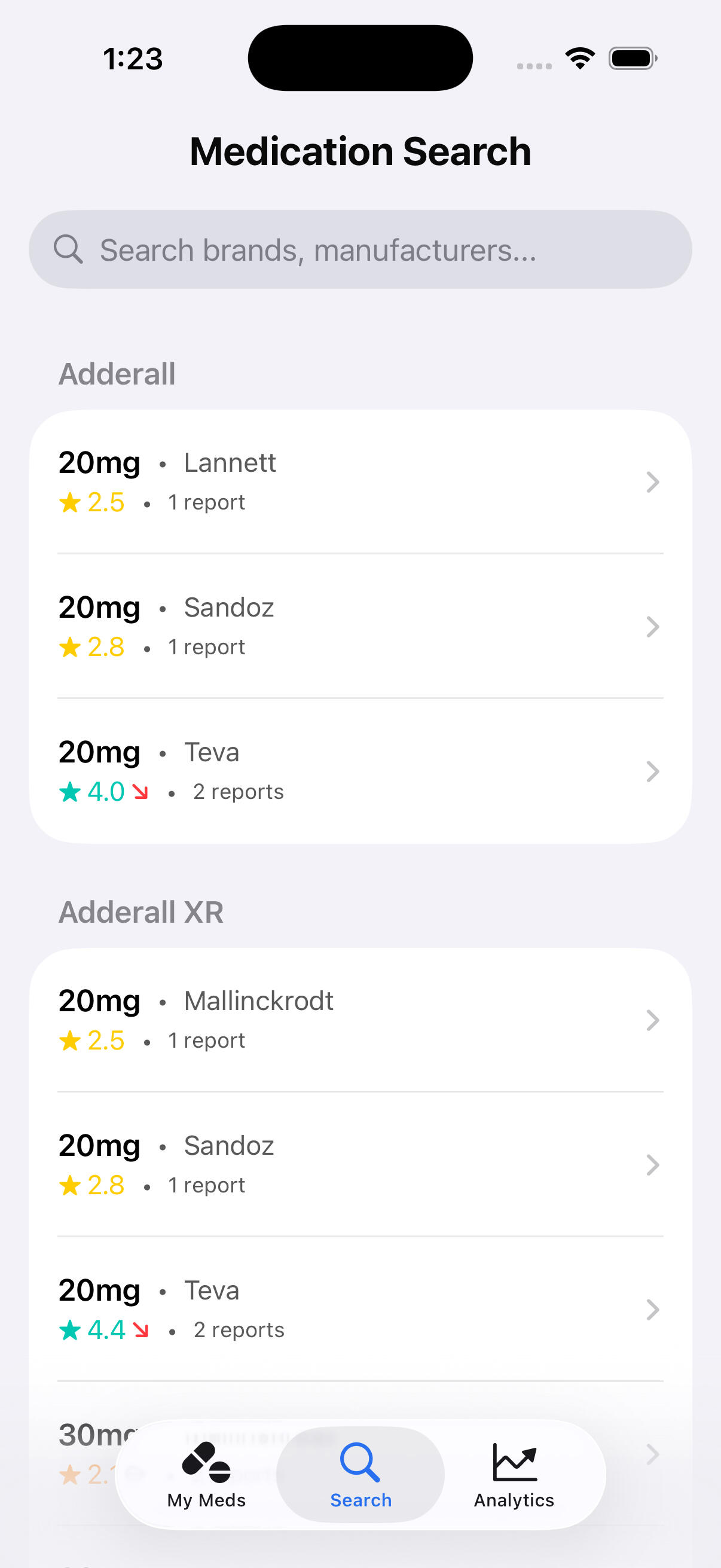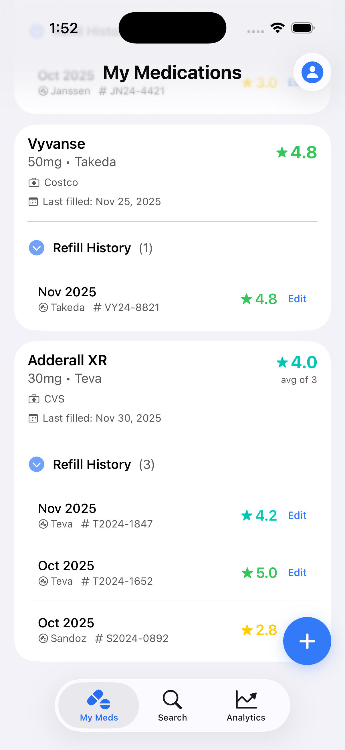 Track your ADHD medication batches, rate effectiveness, and see what the community reports. Built by people with ADHD, for people with ADHD.